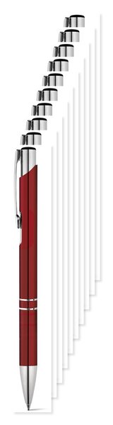 Pack of 10 Egotier 91311 - Aluminium ball pen with clip - Burgundy