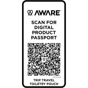 The Trip Aware™ recycled travel toiletry pouch is a compact and straightforward solution for carrying daily essentials. Made from 290D twill polyester with a knitted backing and lined with RPET 210D/PU, it features a clean, minimalist design. The main compartment offers space for toiletries or small items, making it ideal for short trips or on-the-go organisation. Each bag also comes with an Aware™ tracer. This innovative feature allows users to trace the origins and journey of their item through a QR code, enhancing transparency in the supply chain and fostering a stronger connection between the product and its production process. Volume capacity: 2 litres.