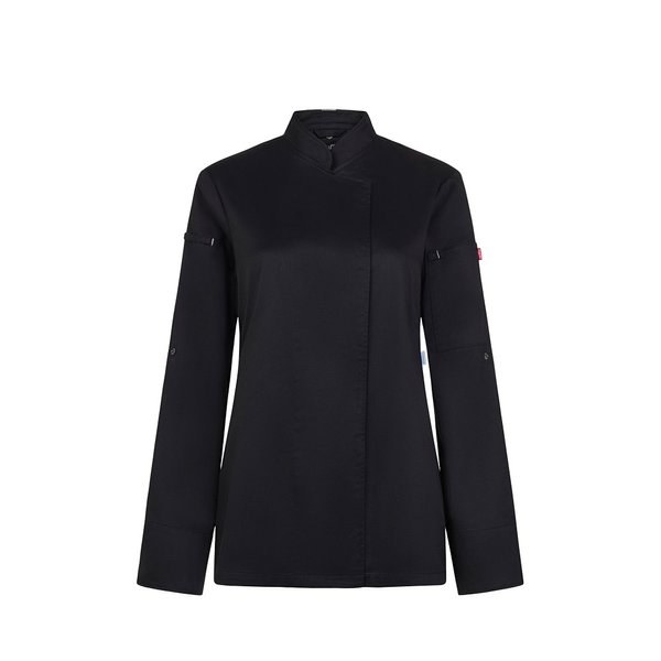 Women's kitchen jacket (190 g/m²) made of cotton (35%) and recycled polyester (65%). With a feminine comfort design, liquid-repellent fabric and breathable COOLMAX fabric back. The jacket has a central zip with concealed buttons. Size: XS, S, M, L, XL, 2XL